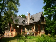 machts.“ Nachdem der jetzige Eigentümer den verwilderten Park, der zum Grundstück gehört, hat lichten lassen, sind auch jetzt die beiden Nebengebäude, das Garten- und das Kutscherhaus zu sehen. Beide Gebäude sind um 1900 entstanden, aber gegenüber der Villa gestalterisch sehr anspruchslos und schlicht. Alle Gebäude werden vom Eigentümer unter denkmalpflegerischer Maßgabe saniert und aufwändig instandgesetzt. |