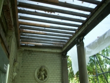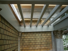 Stahlrahmenkonstruktion eingebaut wurde. Vom Echten Hausschwamm befallene