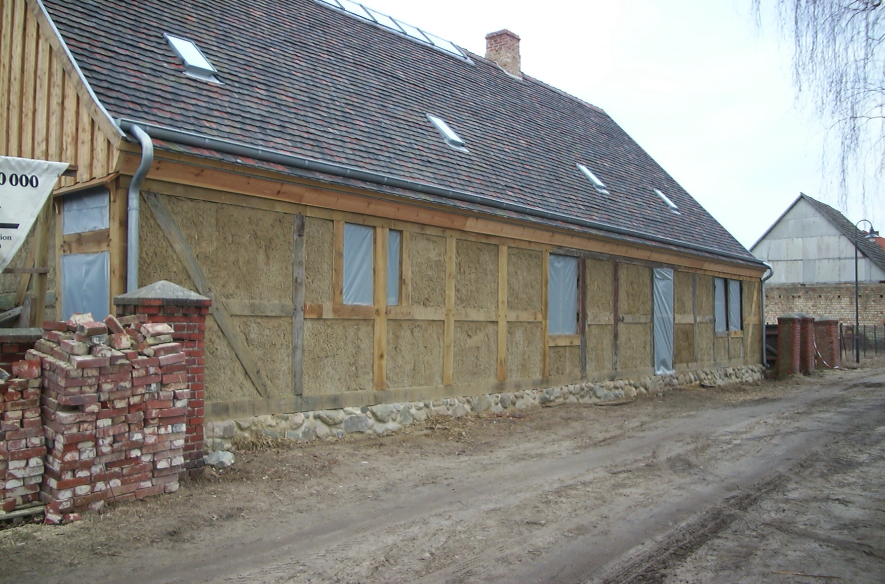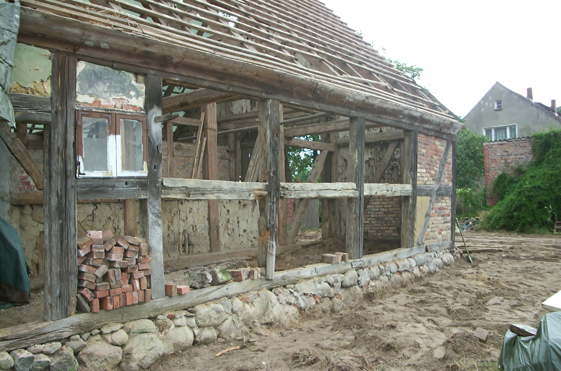 2002 | Erbaut wurde das Gebäude im Jahre 1776 als Unterkunft für Siedler, die zu Zeiten Friedrich des Großen ins Havelland kamen, um hier das Rhinluch trockenzulegen. Da unter ihnen auch viele Holländer waren, wurde diese Häuser auch „Holländerhäuser“ genannt. Das Haus in Neuwerder ist eines der wenigen, dass zum größten Teil im Urzustand erhalten geblieben war, allerdings sehr sanierungsbedürftig. Ein Baudenkmal, bei dem es gelungen ist, die Eigenart der beiden Hausteile beizubehalten. Ein Teil genutzt zu Wohnzwecken mit kleiner Raumaufteilung und der andere Teil – ehemals Scheune bzw. Stall – jetzt ein atelierartiger großzügiger Raum. Bei der Sanierung wurde auf die ursprünglichen Materialien zurückgegriffen, Ziegel, Lehm und Holz. |